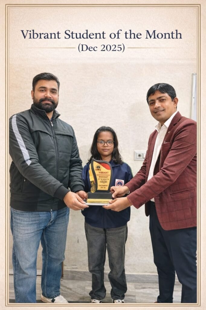 Vibrant Institute of Academics proudly presents the “Vibrant Student of the Month” Award to Siya, daughter of Mr. Surender Kumar (Class 9th).